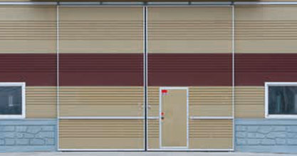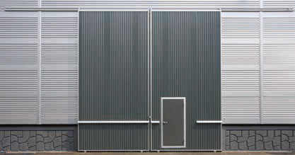 상부에 레일을 설치하여 고장 및 소음 등이 방지된 도어로서 일반창고, 공장, 냉동창고 등에 적합한 도어입니다.